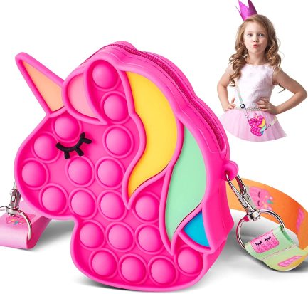 Παιδική Τσάντα ‘Ωμου/Push bubble fidget Unicorn Pop Bag Φούξια (OEM) 12cm