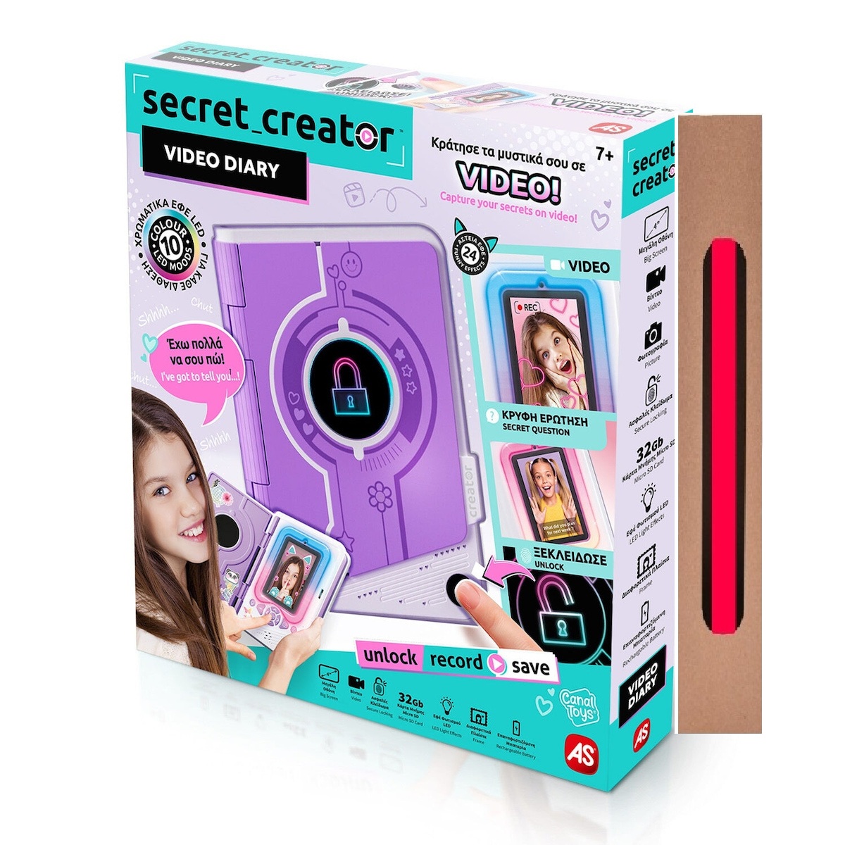 Κράτησε τα μυστικά σου ασφαλή σε βίντεο με Το Ηλεκτρονικό Ημερολόγιο Secret Creator! Ξεκλείδωσε το ημερολόγιό σου με το δακτυλικό σου αποτύπωμα και κατάγραψε τις καθημερινές σου περιπέτειες σε βίντεο. Ασταμάτητη διασκέδαση με επαναφορτιζόμενη μπαταρία, το Video Diary σε ακολουθεί όπου κι αν πας χωρίς να σε σταματά τίποτα!