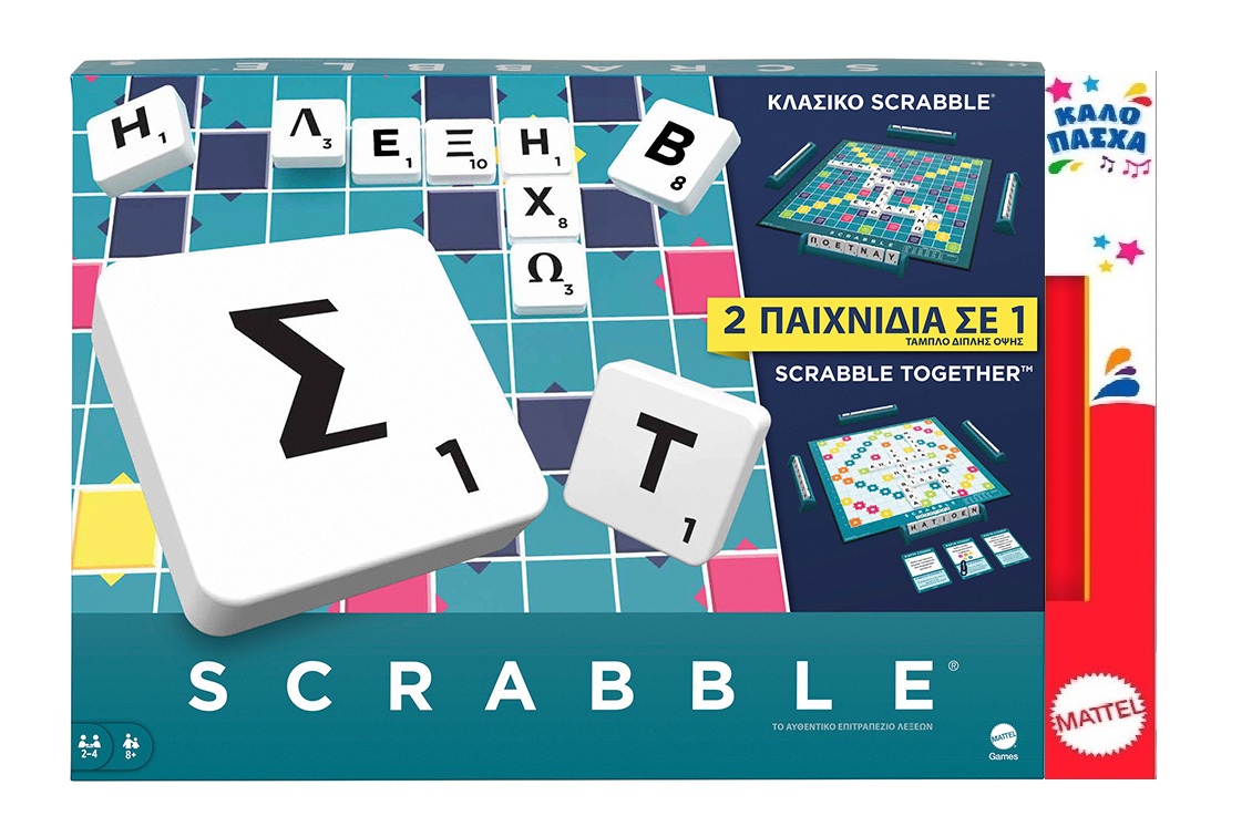 Διασκεδάστε φτιάχνοντας λέξεις με το διάσημο επιτραπέζιο παιχνίδι Scrabble, το οποίο περιλαμβάνει δύο παιχνίδια σε ένα! Οι παίκτες μπορούν να απολαύσουν το κλασικό παιχνίδι λέξεων Scrabble, συνθέτοντας λέξεις και προσπαθώντας να πετύχουν καλές θέσεις στο ταμπλό, όπως Διπλό Γράμμα και Τριπλή Λέξη.