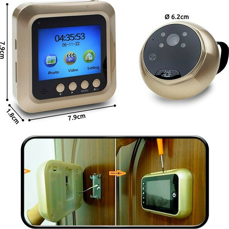 Τοποθετείται εύκολα και με τη μικροκάμερα αντικαθιστά το κλασσικό ματάκι της πόρτας. Προβάλει στην ενσωματωμένη οθόνη στο εσωτερικό της πόρτας.