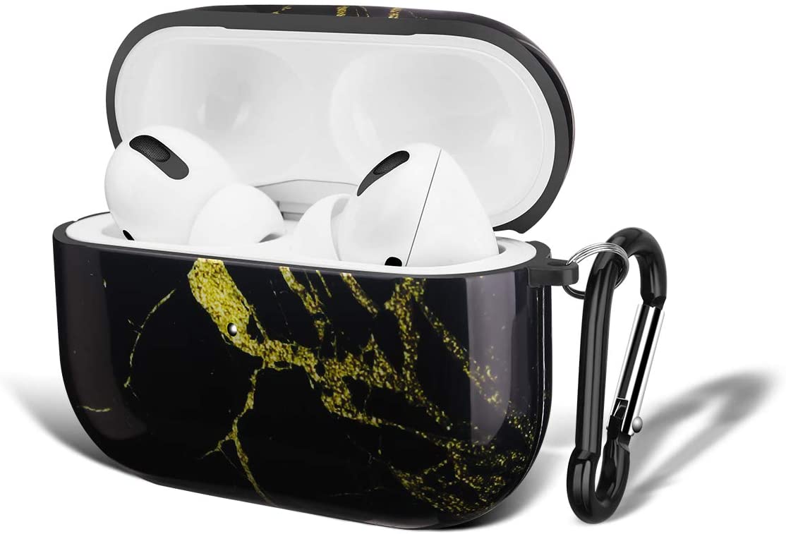Airpods Pro Case – Marble Protective Hard Case Cover Skin Portable & Shockproof with Keychain for Apple Airpods Pro Charging Case (Black Gold Marble )