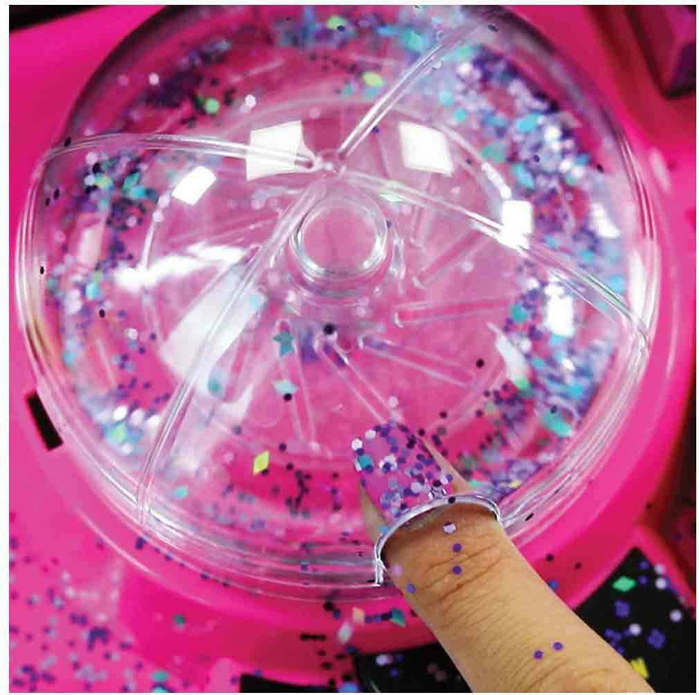 Βάψε τα νύχια σου με τα trendy βερνίκια που θα βρεις στη συσκευασία, και, πριν στεγνώσουν, διάλεξε το glitter που προτιμάς και πρόσθεσέ το στη glitter μηχανή. Τοποθέτησε τα νύχια σου στη συσκευή, έγιναν τόσο λαμπερά! Μπορείς να προσθέσεις αυτοκόλλητα και φαντασία για ακόμα περισσότερο στιλ. Θα βρεις πάνω από 100 στη συσκευασία!