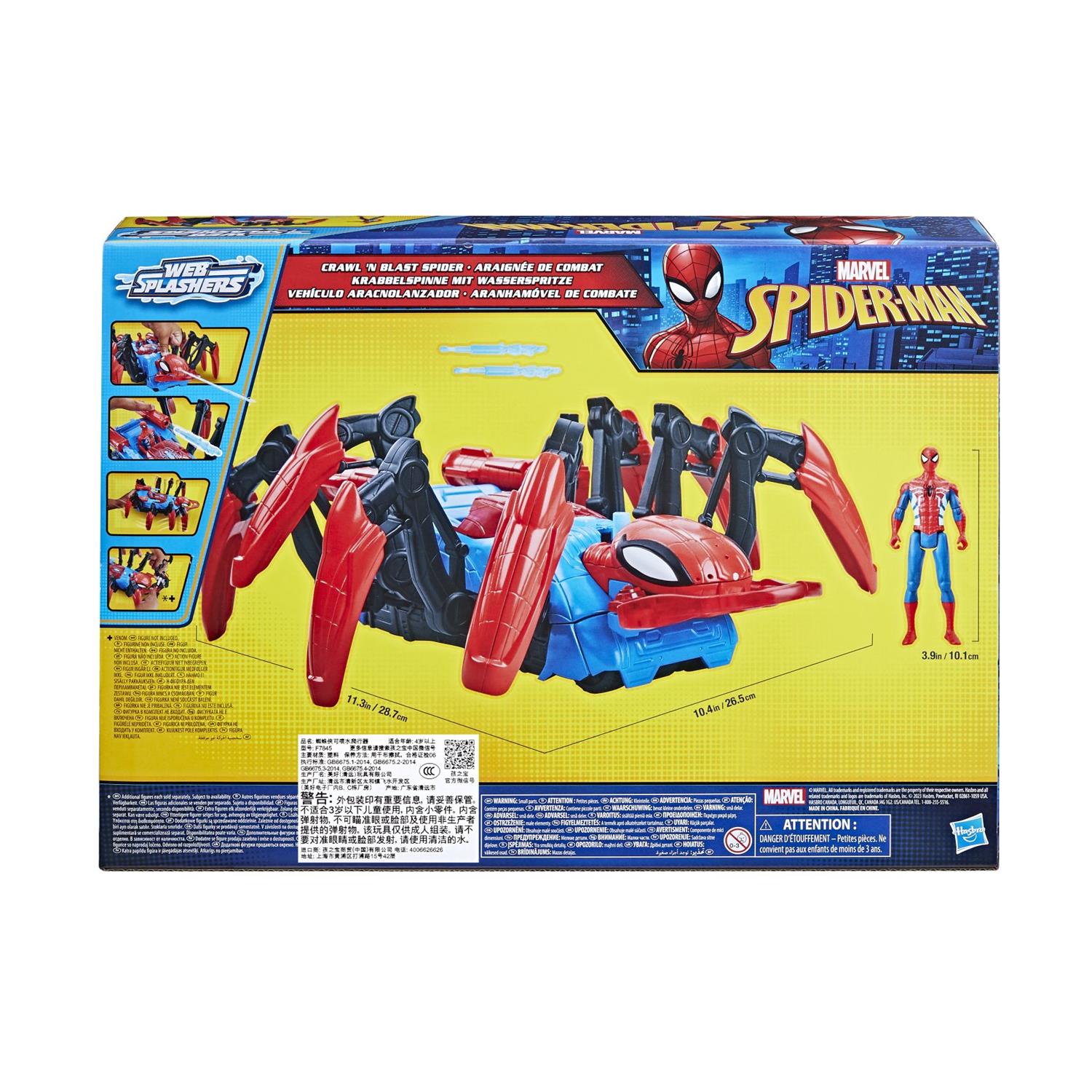 Ψάχνετε την πιο ηρωική δράση με τον Spider-Man; Το Crawl ‘N Blast Spider κάνει κάτι περισσότερο από απλώς να επιταχύνει τον αγαπημένο σας ήρωα που αιωρείται στον ιστό στη διάσωση! Αυτό το σετ αυτοκινήτου περιλαμβάνει μια αρθρωτή φιγούρα Spider-Man 4 ιντσών που τα παιδιά μπορούν να τοποθετήσουν στο Crawl ‘N Blast Spider. Τα παιδιά 4 ετών και άνω μπορούν να γεμίσουν το αποσπώμενο κεφάλι της αράχνης με νερό και να ενεργοποιήσουν τη λειτουργία εκτόξευσης νερού με το πάτημα ενός κουμπιού! Το αυτοκινήτου Spider-Man μπορεί επίσης να εκτοξεύσει βελάκια από ιστό.