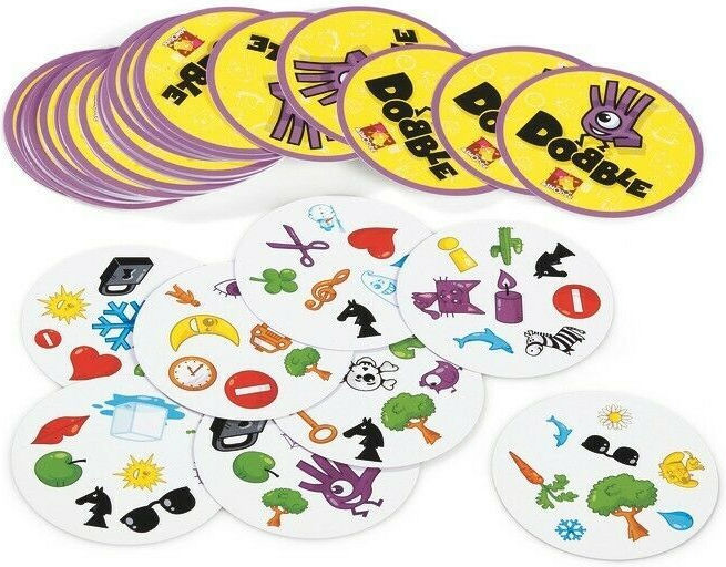 Dobble: πάνω από 50 σύμβολα, 55 κάρτες, 8 σύμβολα ανά κάρτα και πάντα μόνο ένα κοινό σύμβολο σε οποιοδήποτε ζευγάρι καρτών!