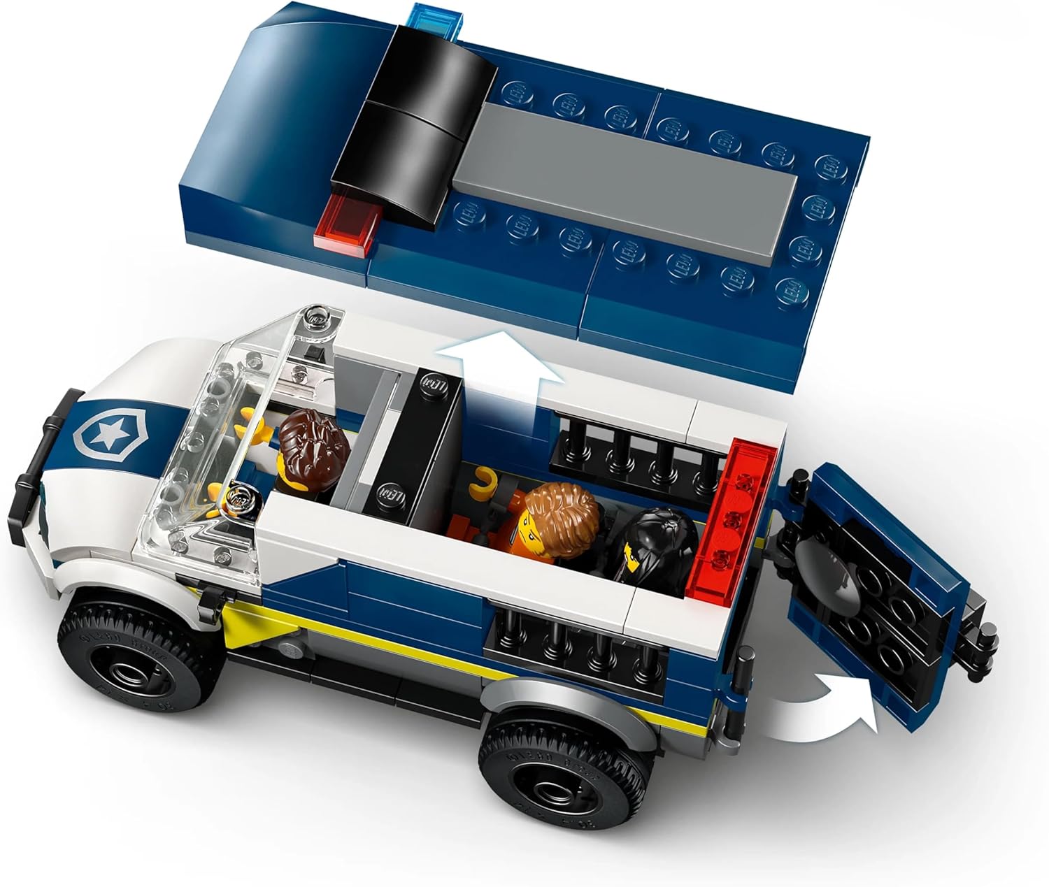 - Περιεχόμενο: Το σετ περιλαμβάνει ένα λεπτομερές αστυνομικό φορτηγό με καμπίνα οδηγού και κελί φυλακής με χώρο για 2 κακοποιούς. Περιλαμβάνει επίσης μια μοτοσικλέτα διαφυγής για τους κακοποιούς.