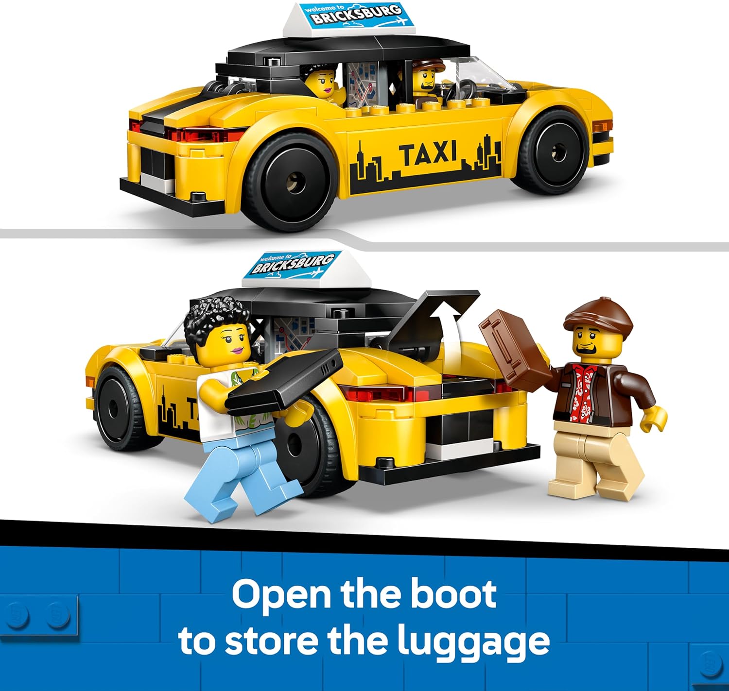 • Περιεχόμενα: Το σετ περιλαμβάνει δύο μίνι φιγούρες (έναν οδηγό ταξί και έναν τουρίστα) και αξεσουάρ, όπως αποσκευές. Περιλαμβάνονται αυτοκόλλητα με τυπωμένα σχέδια, όπως οθόνη GPS, λογότυπο ταξί, διαφήμιση οροφής και μπαταρία.