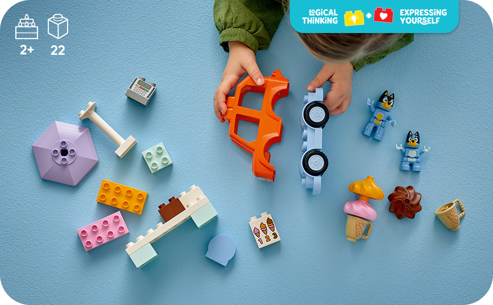 Η σειρά Lego Duplo έχει σχεδιαστεί ειδικά για τους μικρούς δημιουργούς, προσφέροντας τουβλάκια που είναι ιδανικά για χεράκια νήπίων. Το σετ Ice Cream Trip With Bluey περιλαμβάνει 22 κομμάτια από ανθεκτικά πλαστικά υλικά, που επιτρέπουν στα παιδιά να εξερευνούν φανταστικούς κόσμους μέσα από το παιχνίδι. Οι έντονες χρωματικές επιλογές και οι μικρές φιγούρες εμπνέουν τη δημιουργικότητα και προσφέρουν απεριόριστη διασκέδαση. Μέσω αυτού του παιχνιδιού, τα παιδιά μπορούν να αναπτύξουν τις λεπτές κινητικές τους δεξιότητες, τη φαντασία τους και τη μαθηματική σκέψη, απολαμβάνοντας παράλληλα τη διαδικασία της δημιουργίας.