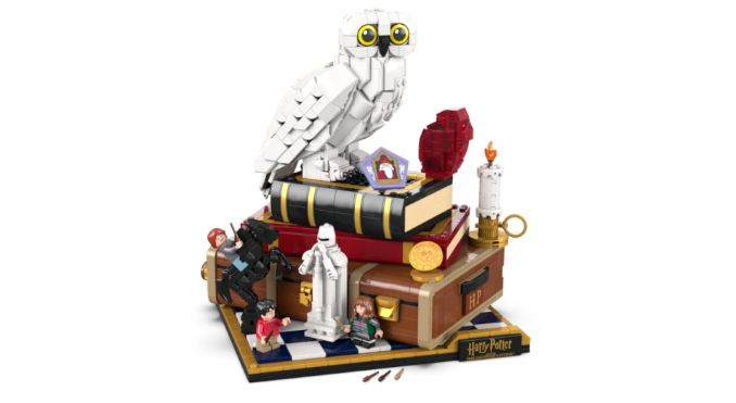 Δημιουργήστε την πρώτη φιγούρα κουκουβάγιας LEGO Hedwig™ με κλειστά φτερά και εκθέστε την δίπλα στη Φιλοσοφική Λίθο πάνω στο μπαούλο του Χάρι Πότερ. Προσθέστε 3 μίνι φιγούρες LEGO Harry Potter – τον Χάρι Πότερ, την Ερμιόνη Γκρέιντζερ και τον Ρον Ουέσλι – και αντικείμενα όπως μια κάρτα Σοκολατένιου Βάτραχου και μια Σκακιέρα των Μάγων.