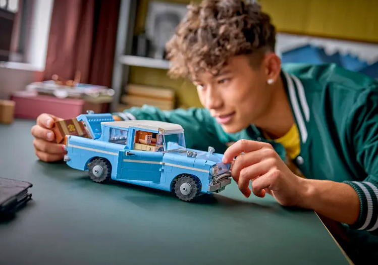Αυτό το σετ προσφέρει μια μοναδική εμπειρία παιχνιδιού και επίδειξης, αναπαριστώντας το πιο διάσημο όχημα του Wizarding World. Με ειδικές λειτουργίες που ενεργοποιούνται πατώντας τους προφυλακτήρες, μπορείς να ανοίξεις τις πόρτες και το πορτμπαγκάζ ή να δεις τις αποσκευές των ηρώων να “πετούν” έξω, ακριβώς όπως στη σκηνή της ταινίας.