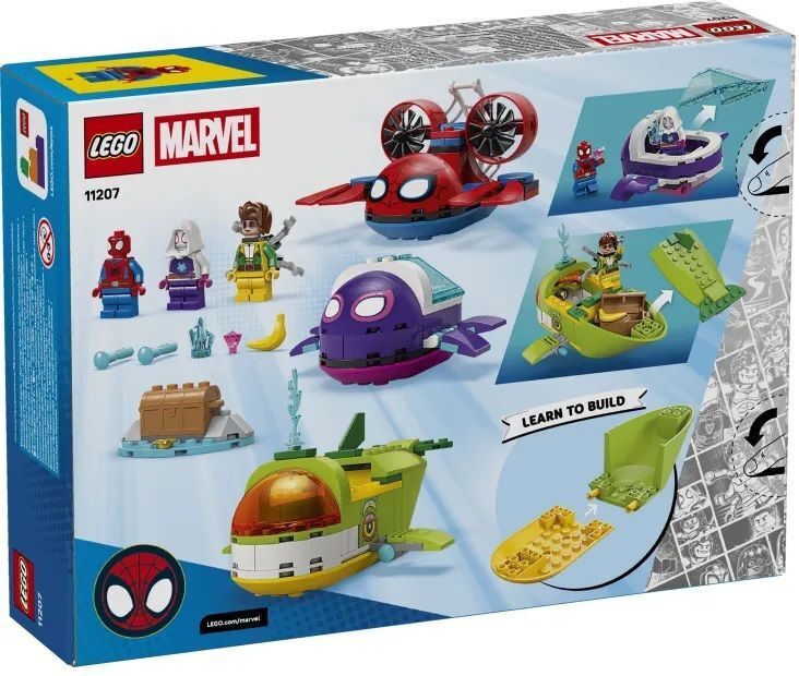 Το σετ κατασκευής LEGO Spidey: Υποβρύχια Οχήματα περιλαμβάνει μίνι φιγούρες του Spidey, της Ghost-Spider και του Doc Ock, καθώς και 3 υποβρύχια. Το παιχνίδι αυτό αναπτύσσει τις δημιουργικές δεξιότητες των παιδιών μέσω της κατασκευής και του παιχνιδιού. Ορίζει 3 οχήματα: το υποβρύχιο-καβούρι του Spidey με μια μεγάλη παγίδα ιστού, το υποβρύχιο-χελώνα της Ghost-Spider με διαφανές καβούκι που ανοίγει, και το υποβρύχιο-φάλαινα του Doc Ock με εκτοξευτές στα πτερύγια και αποθηκευτικό χώρο για το σεντούκι του θησαυρού.