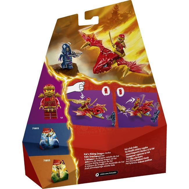 Το LEGO® NINJAGO® Atak powstającego smoka Kaia (71801) προσφέρει στα αγόρια και κορίτσια άνω των έξι ετών την δυνατότητα να αναπαραστήσουν περιπέτειες από τη δεύτερη σεζόν της σειράς NINJAGO® Powstanie Smoków.