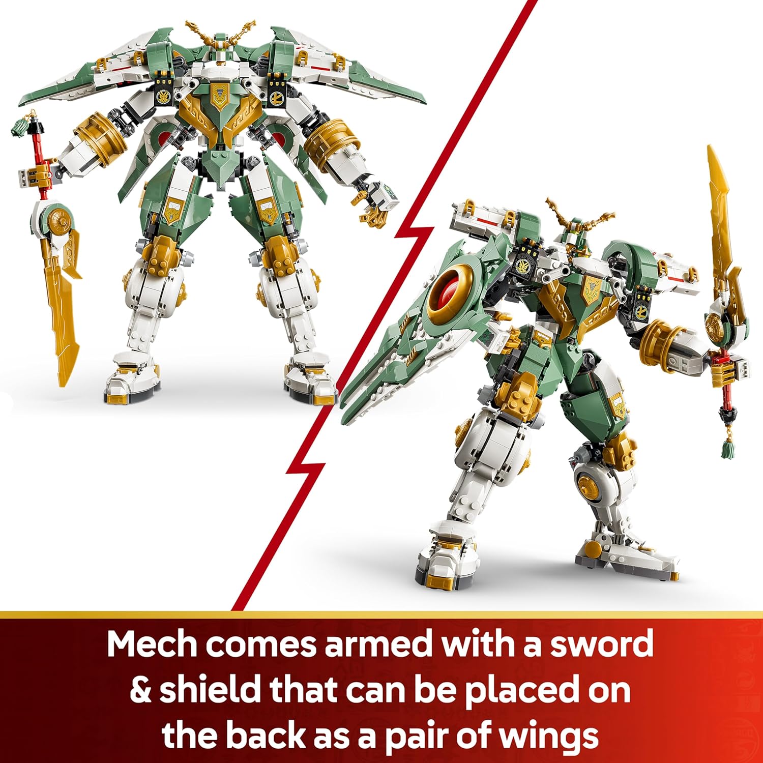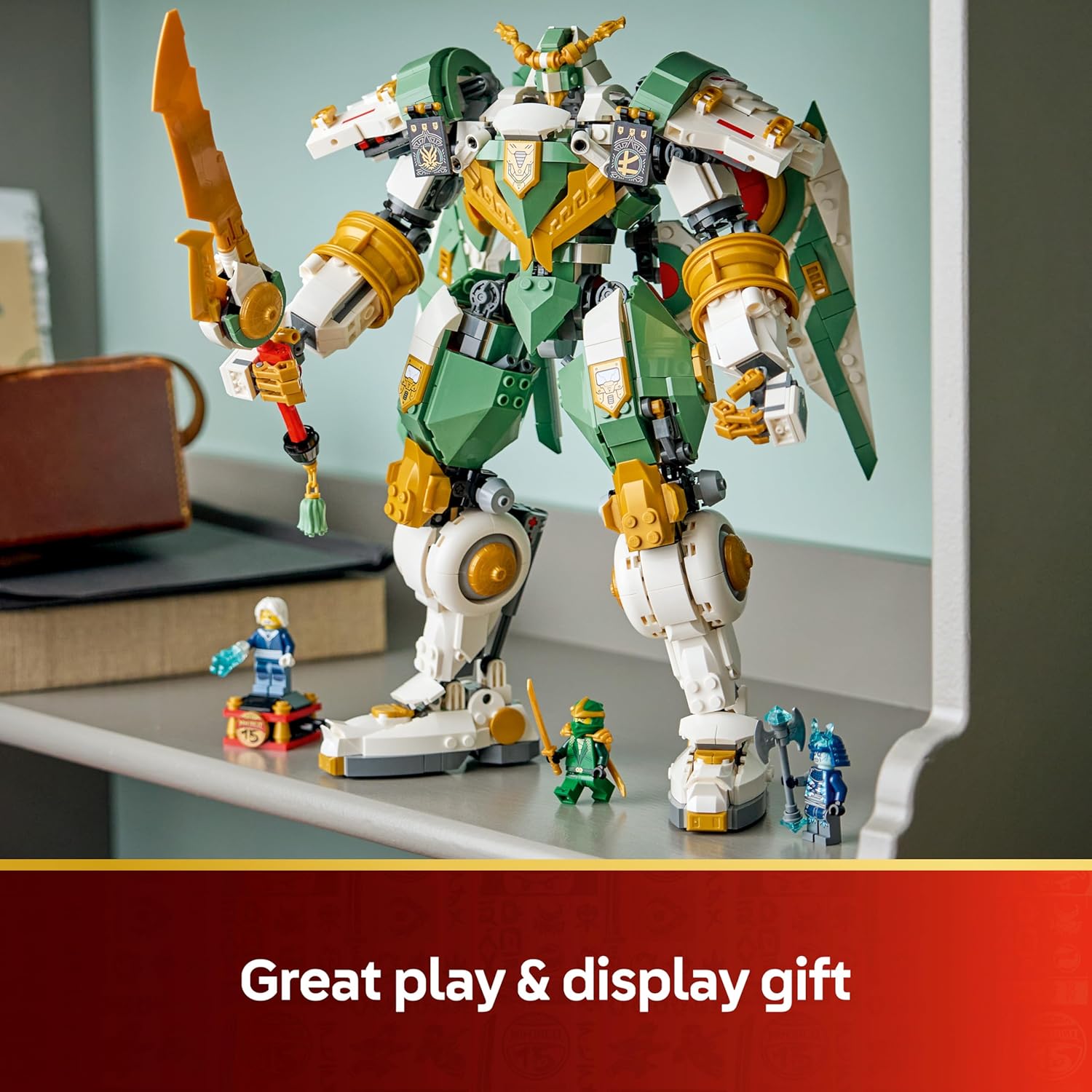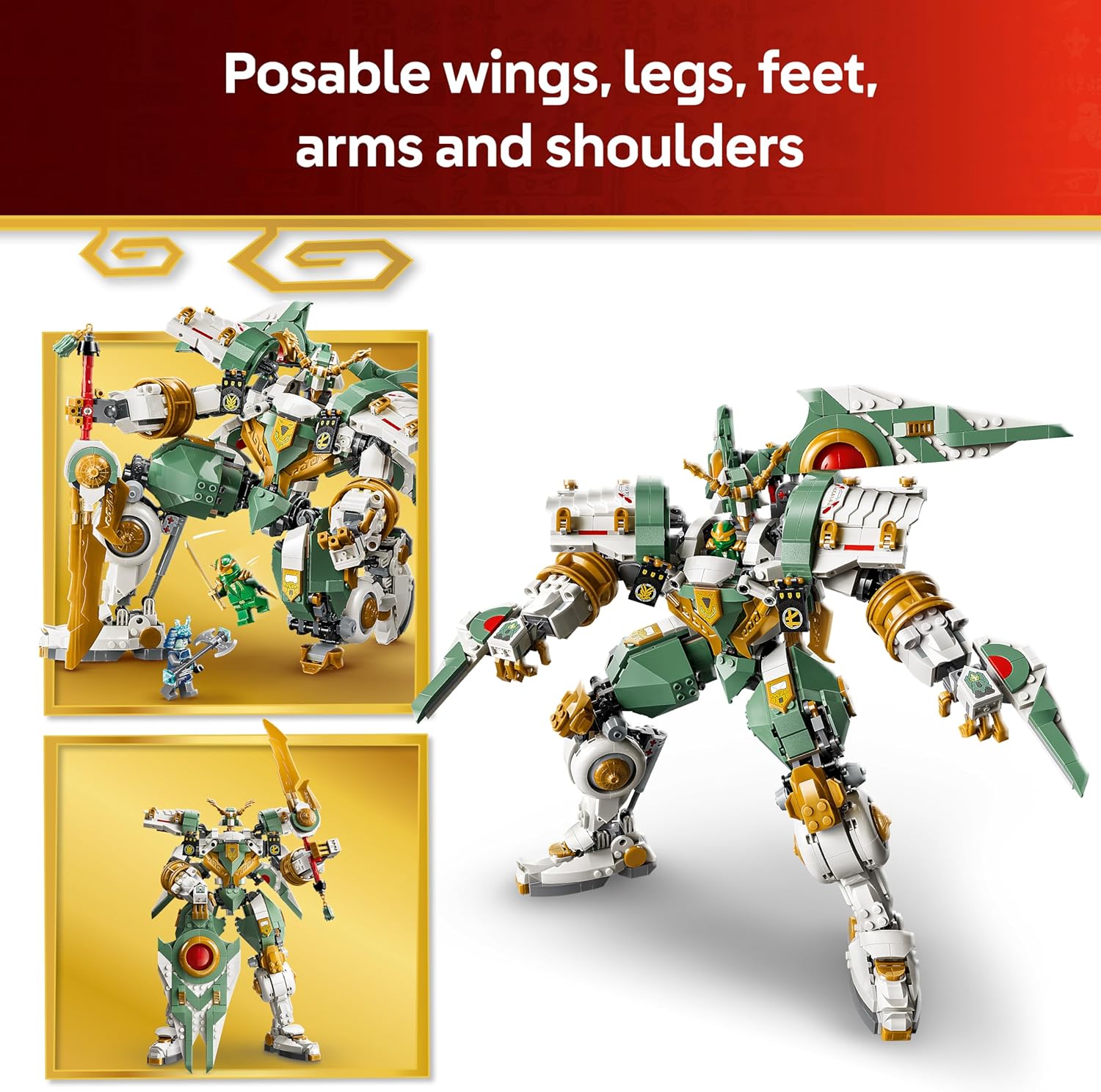 Μπείτε μέσα στο πιλοτήριο και οδηγήστε τον Lloyd στη νίκη! Αυτός ο εντυπωσιακός Μηχανή διαθέτει αρθρωτά χέρια και πόδια, επιτρέποντάς σας να τον τοποθετήσετε σε δυναμικές στάσεις μάχης. Κρατήστε το γιγαντιαίο χρυσό σπαθί και αντιμετωπίστε τις δυνάμεις του κακού με στυλ και δύναμη.