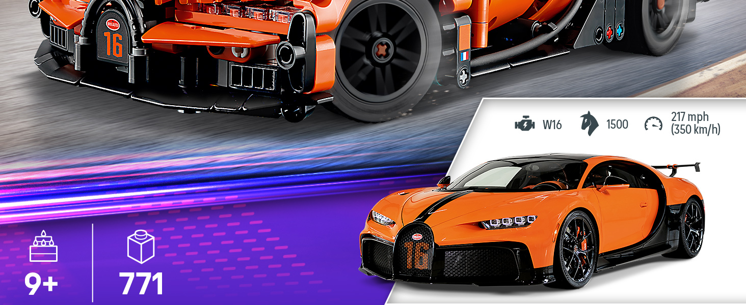 LEGO Technic Bugatti Chiron Pur Sport Hypercar (42222) είναι ένα σετ κατασκευής με ρεαλιστικά χαρακτηριστικά, σχεδιασμένο για ηλικίες 9 ετών και άνω.