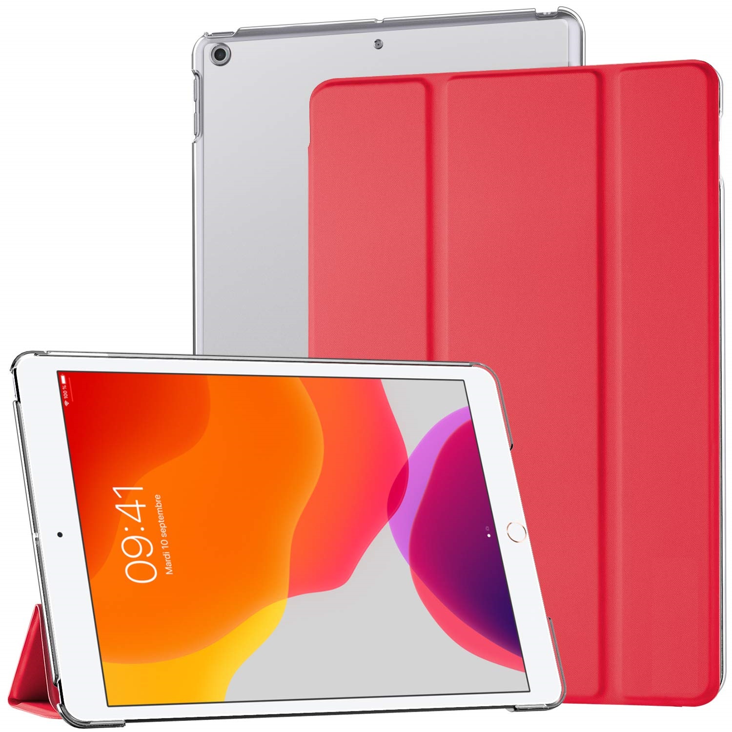 New iPad 7th Generation 10.2″ 2019 / iPad 10.2 Case – Ultra Slim Lightweight Stand Case with Translucent Frosted Back Cover – Red (oem)
