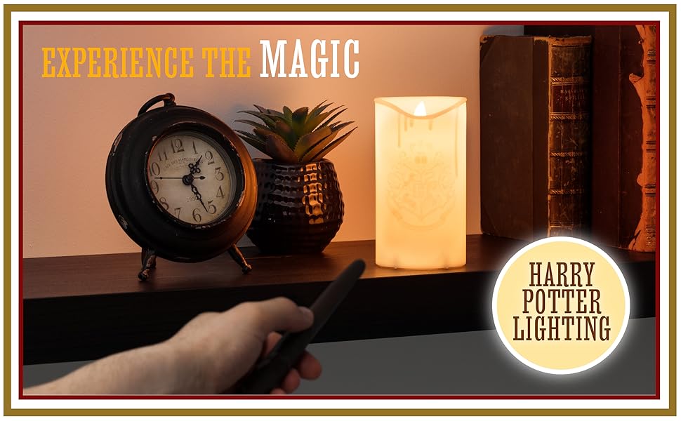 Φωτίστε το δωμάτιο ή το σπίτι σας με το μαγικό Φωτιστικό Κεριού Harry Potter. Το φωτιστικό έχει ύψος 14εκ και είναι διακοσμημένο με το έμβλημα του Hogwarts, διαθέτοντας LED φλόγα στην κορυφή και λεπτομέρειες κεριού στις πλευρές. Χρησιμοποιήστε το ραβδί για να ενεργοποιήσετε ή να απενεργοποιήσετε το φωτιστικό χωρίς την ανάγκη μανγκλ μεθόδων. Το φωτιστικό απαιτεί 3x AAA μπαταρίες, ενώ το ραβδί 2x AAA μπαταρίες (δεν περιλαμβάνονται). Το Φωτιστικό Κεριού Harry Potter είναι ιδανικό για φαν του Harry Potter και του κόσμου των μάγων.