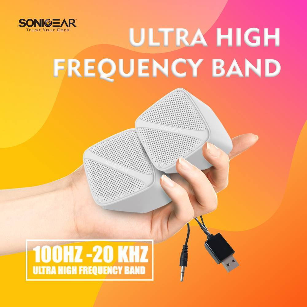 Τα ηχεία Sonic Gear Cube 2.0 συνδέονται γρήγορα και εύκολα σε οποιαδήποτε πηγή ήχου. Διαθέτουν θύρα USB και ένα βύσμα jack 3.5 mm για έξοδο ήχου. Δεν καταλαμβάνει πολύ χώρο στο τραπέζι ή το γραφείο σου χάρη στο μικρό τους μέγεθος.