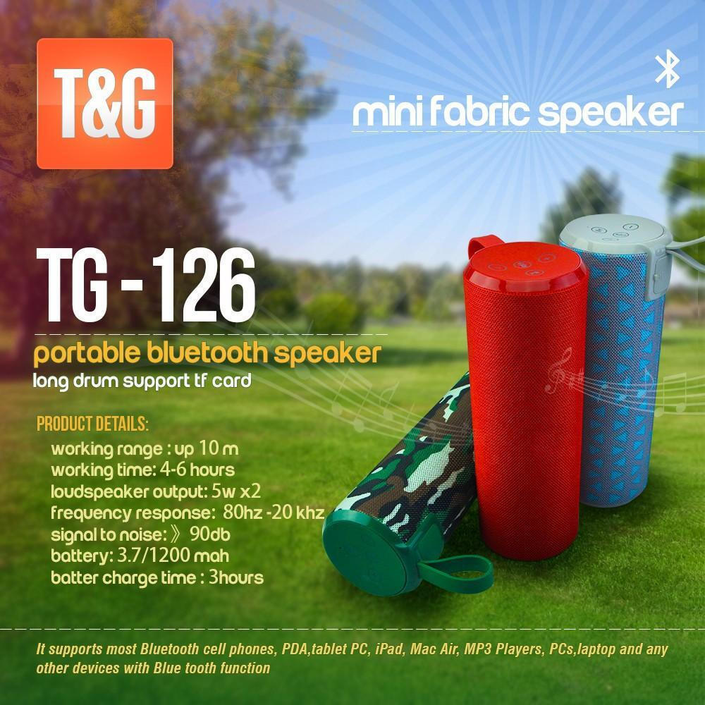 Το ηχείο T&G TG-126 απευθύνεται σε όσους αναζητούν μια φορητή λύση για αναπαραγωγή μουσικής. Είναι ένα φορητό ηχείο που συνήθως χρησιμοποιείται για να ακούτε μουσική από συσκευές όπως κινητά τηλέφωνα, tablet, υπολογιστές και άλλες πηγές ήχου με ασύρματη σύνδεση Bluetooth. Είναι κατάλληλο για χρήση σε διάφορες καταστάσεις όπως σε εξωτερικούς χώρους, σε πάρτι, εκδηλώσεις ή απλά για ατομική ακρόαση μουσικής.