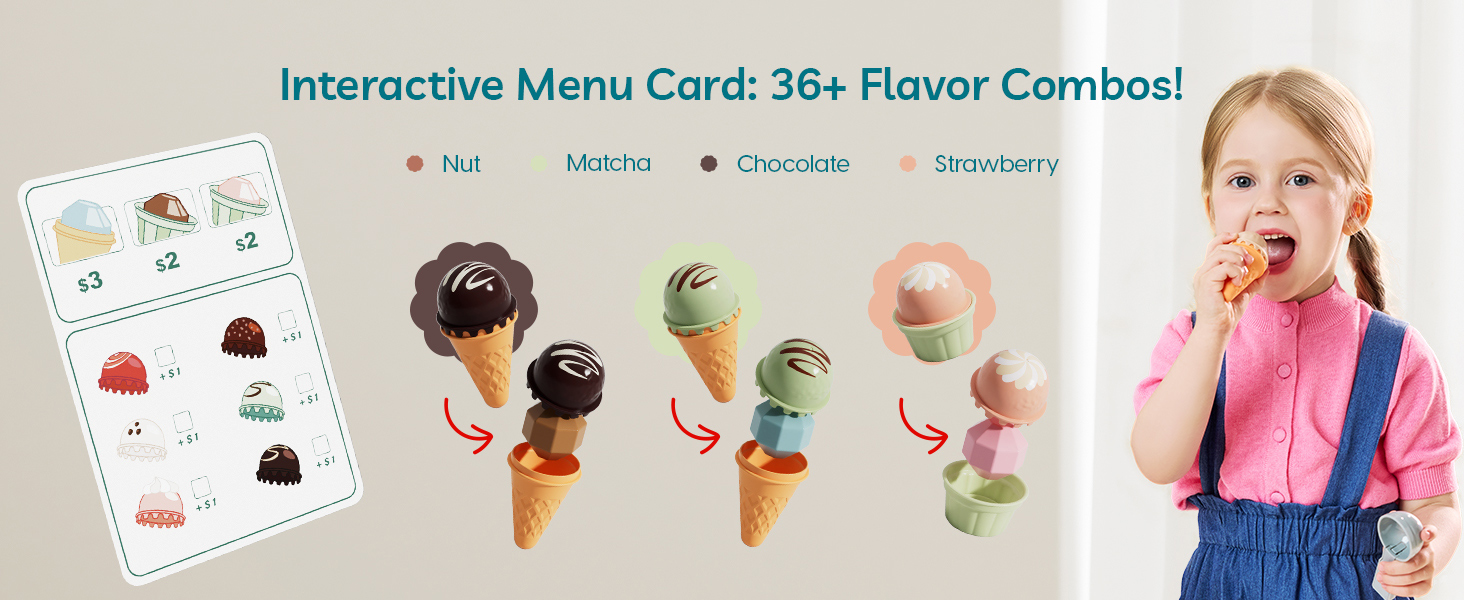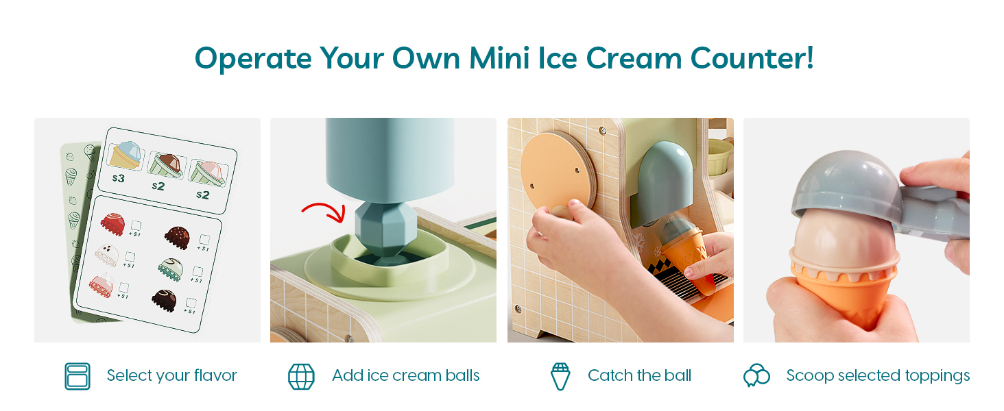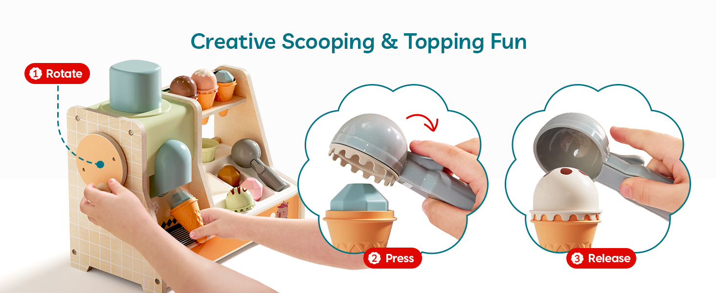 Το κουτάλι σηκώνει εύκολα τις κουτάλες, επιτρέποντας στα παιδιά να σερβίρουν τις δημιουργίες τους σαν να είναι ένα πραγματικό παγωτατζίδικο.