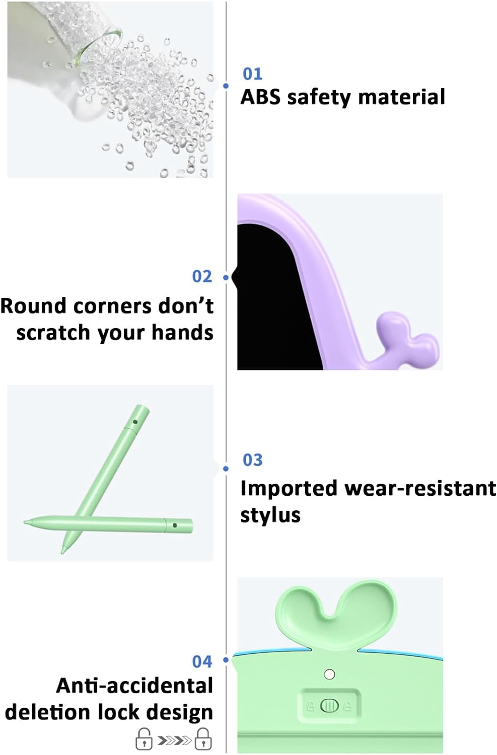 Ατελείωτη διασκέδαση και βελτιωμένη μάθηση: Με αυτό το tablet γραφής JOEAIS LCD, τα παιδιά μπορούν να ζωγραφίζουν, να γράφουν, να κάνουν doodle και πολλά άλλα, εμπνέοντας τη δημιουργικότητα και τη φαντασία τους. Επιπλέον, το μπλοκ σχεδίασης είναι ένα φιλικό προς το περιβάλλον εργαλείο εκμάθησης που μπορεί να αντικαταστήσει το παραδοσιακό στυλό και χαρτί, μειώνοντας τα απόβλητα και τη ρύπανση του περιβάλλοντος.